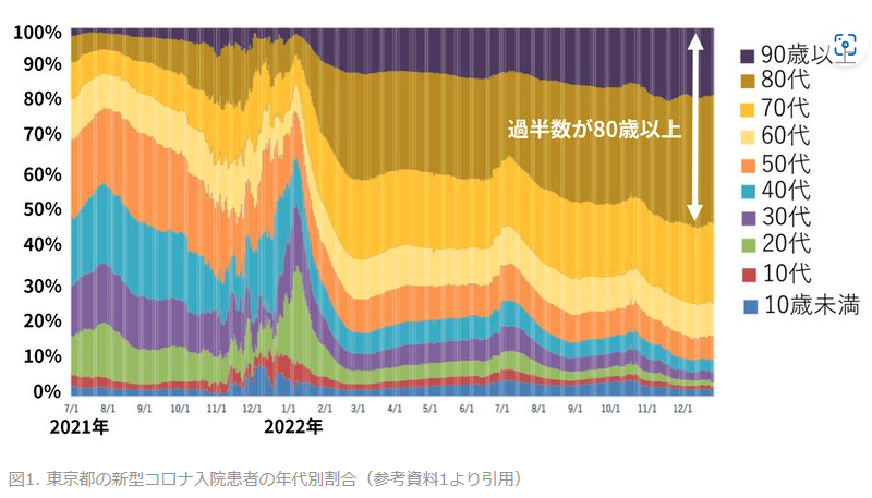 また倉原氏の同じ記事によると、コロナ陽性者はお年寄りが増えてきたそうです。