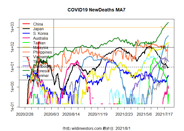 それらの国は他国は3週間程度でピークを打ったのですが、日本ではそれより長く1か月以上増加が続いています。