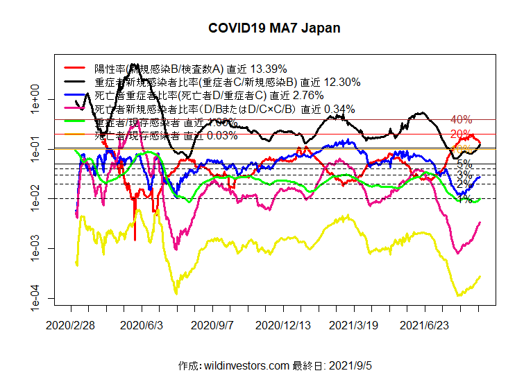たとえば前回70-80人死亡していた9月上旬は、重症者が2000人超いました。